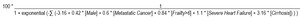 with each factor (e.g. [Male], [Metastatic Cancer]) taking the value of 0 or 1 if nonapplicable or applicable, respectively, in that particular patient.